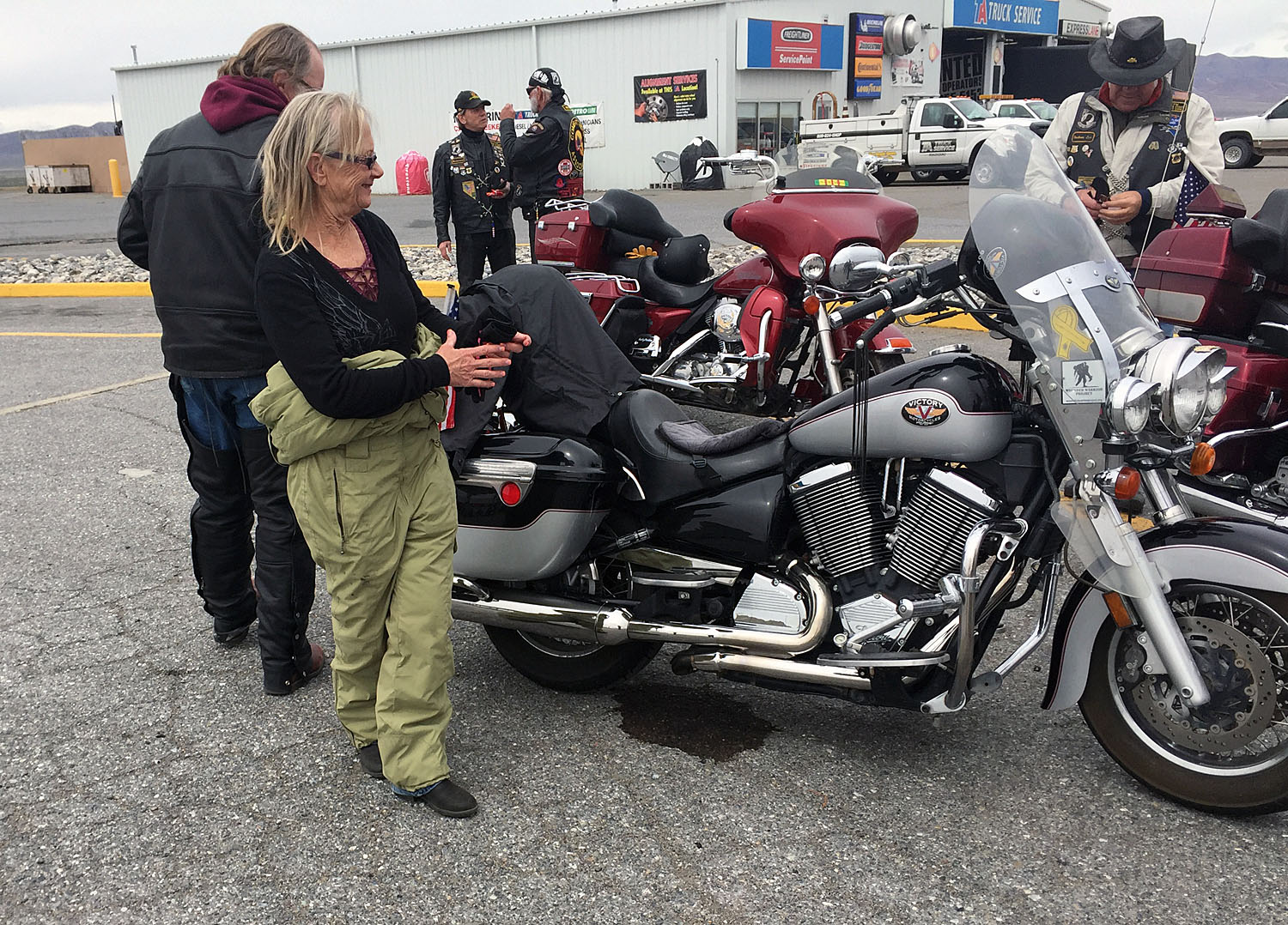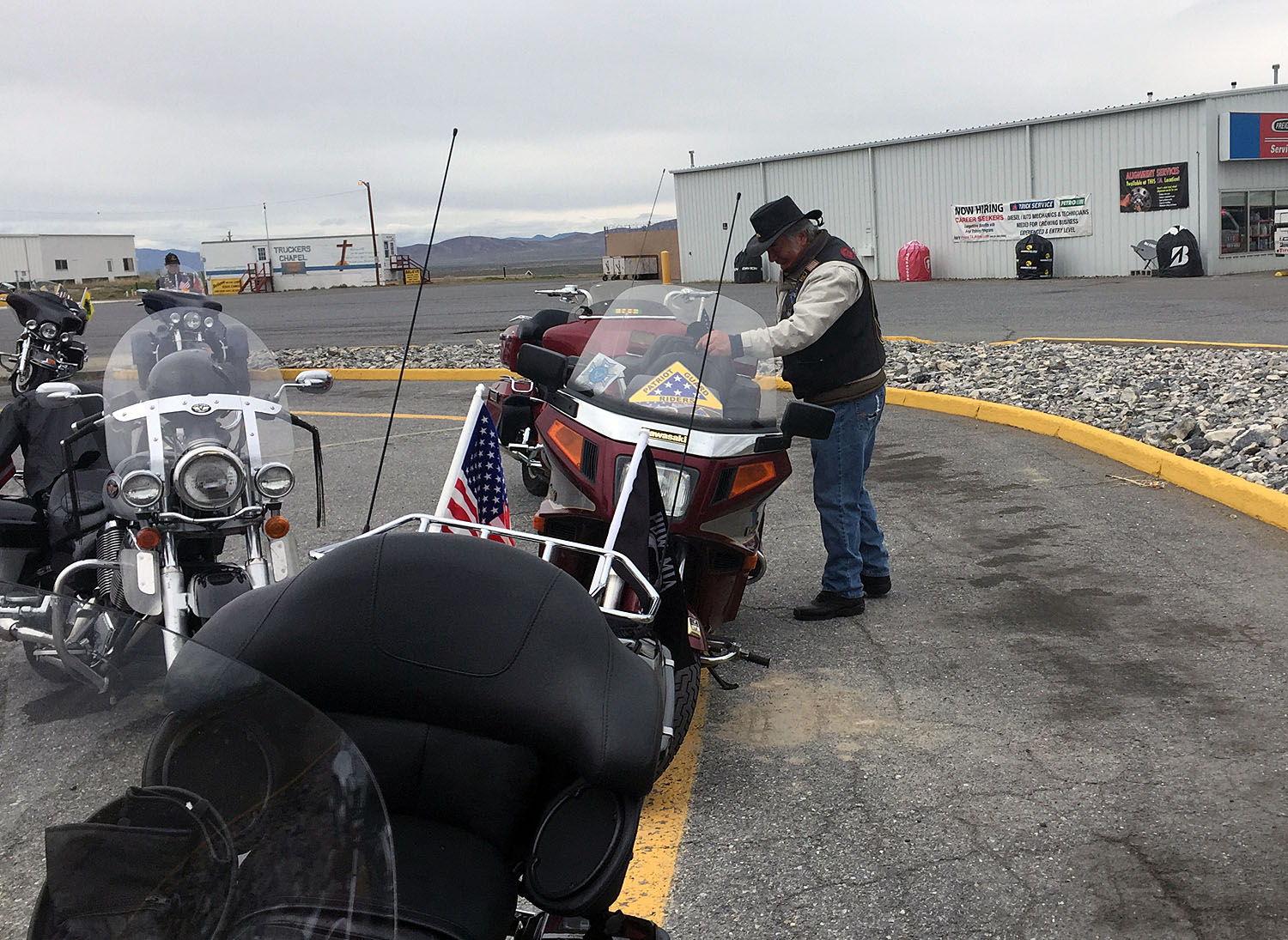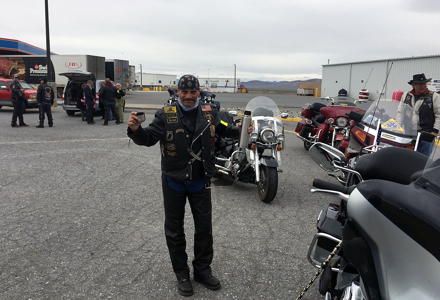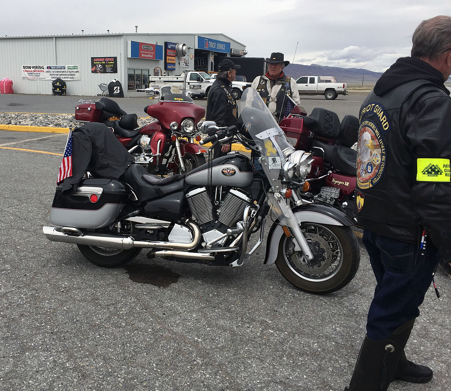 Ride Captain Jim Driscoll rode his motor from Winnemucca to Mill City To join the escort.