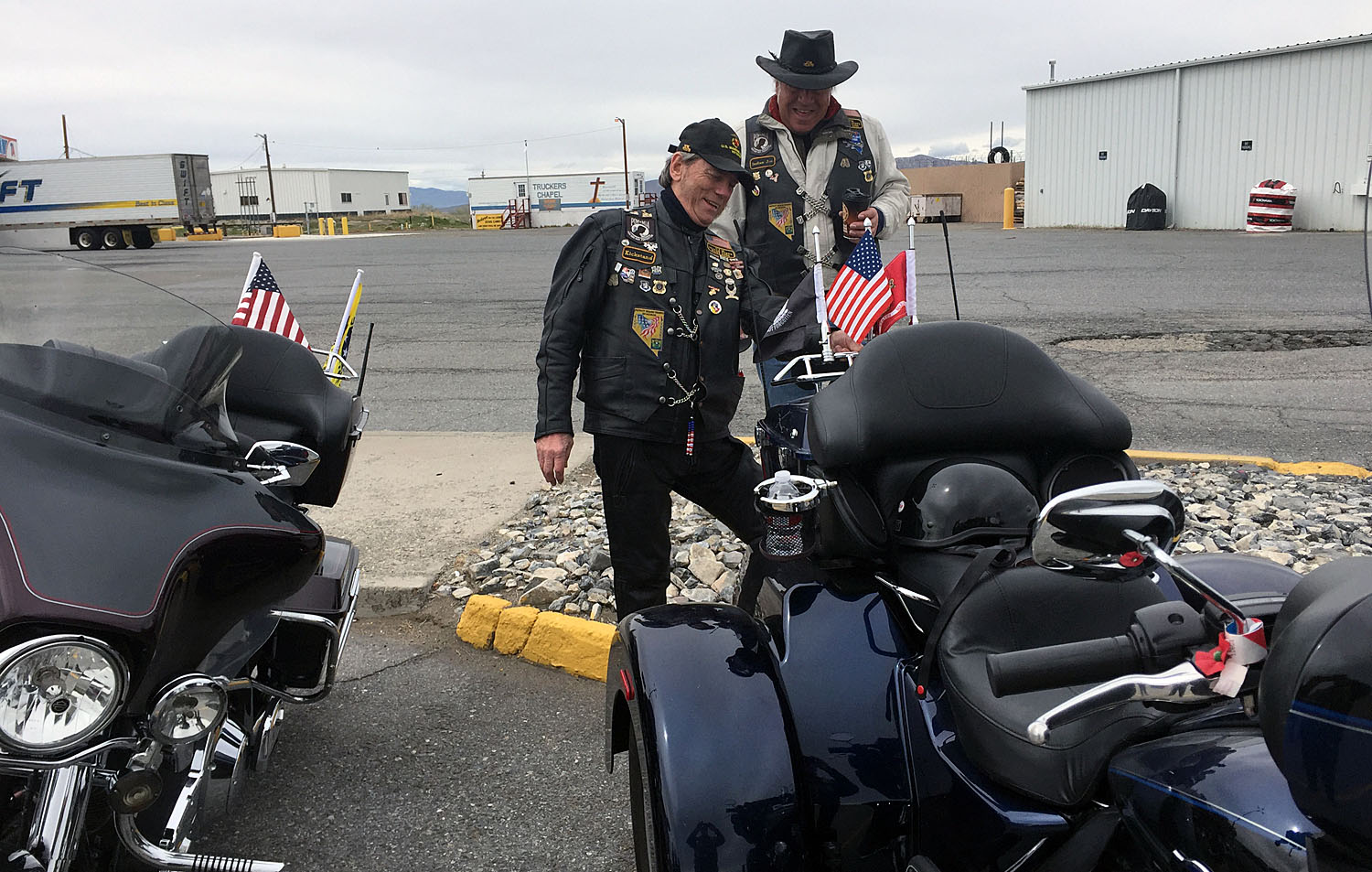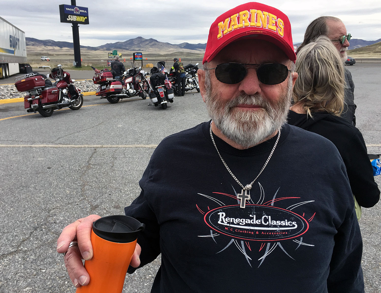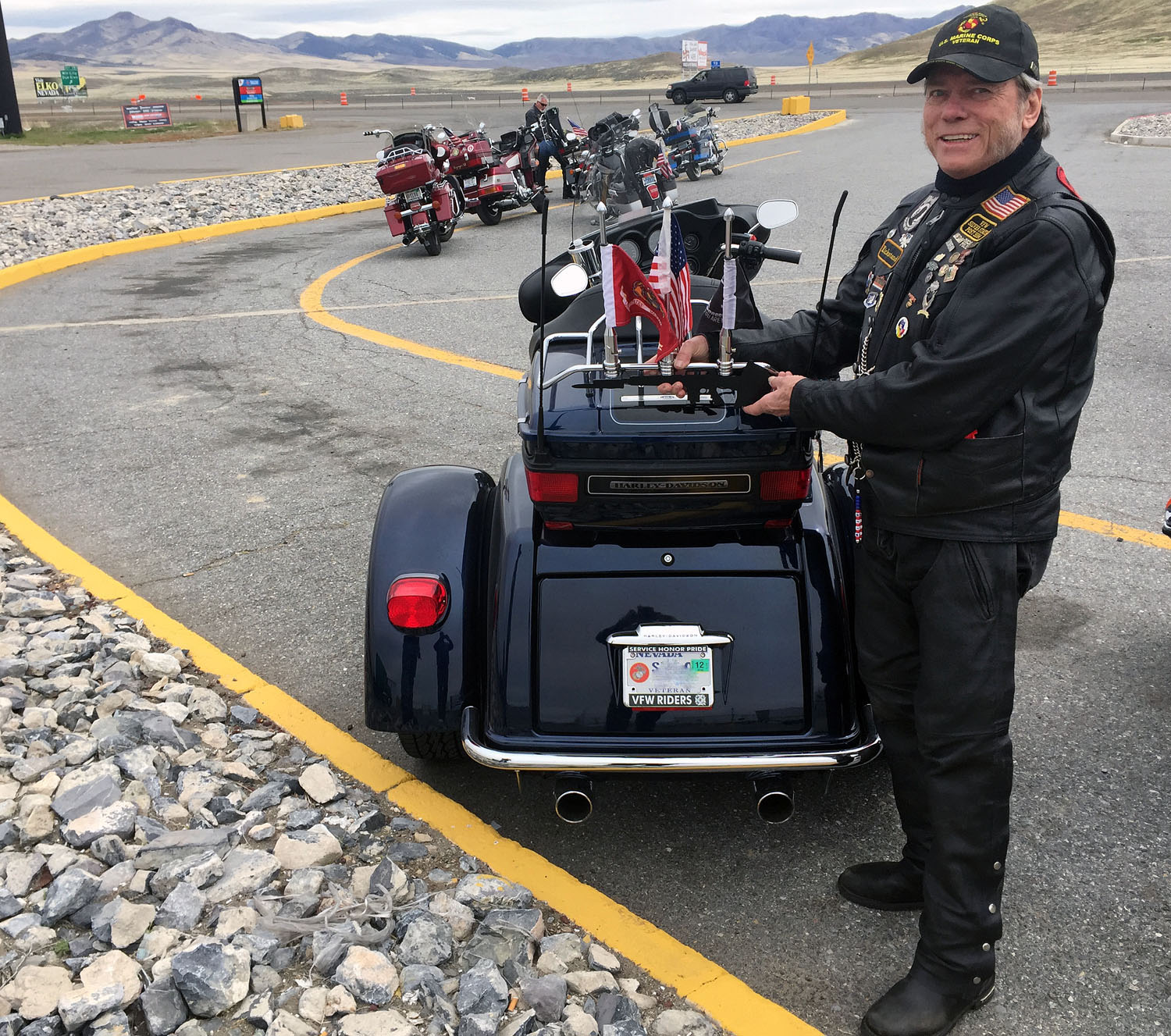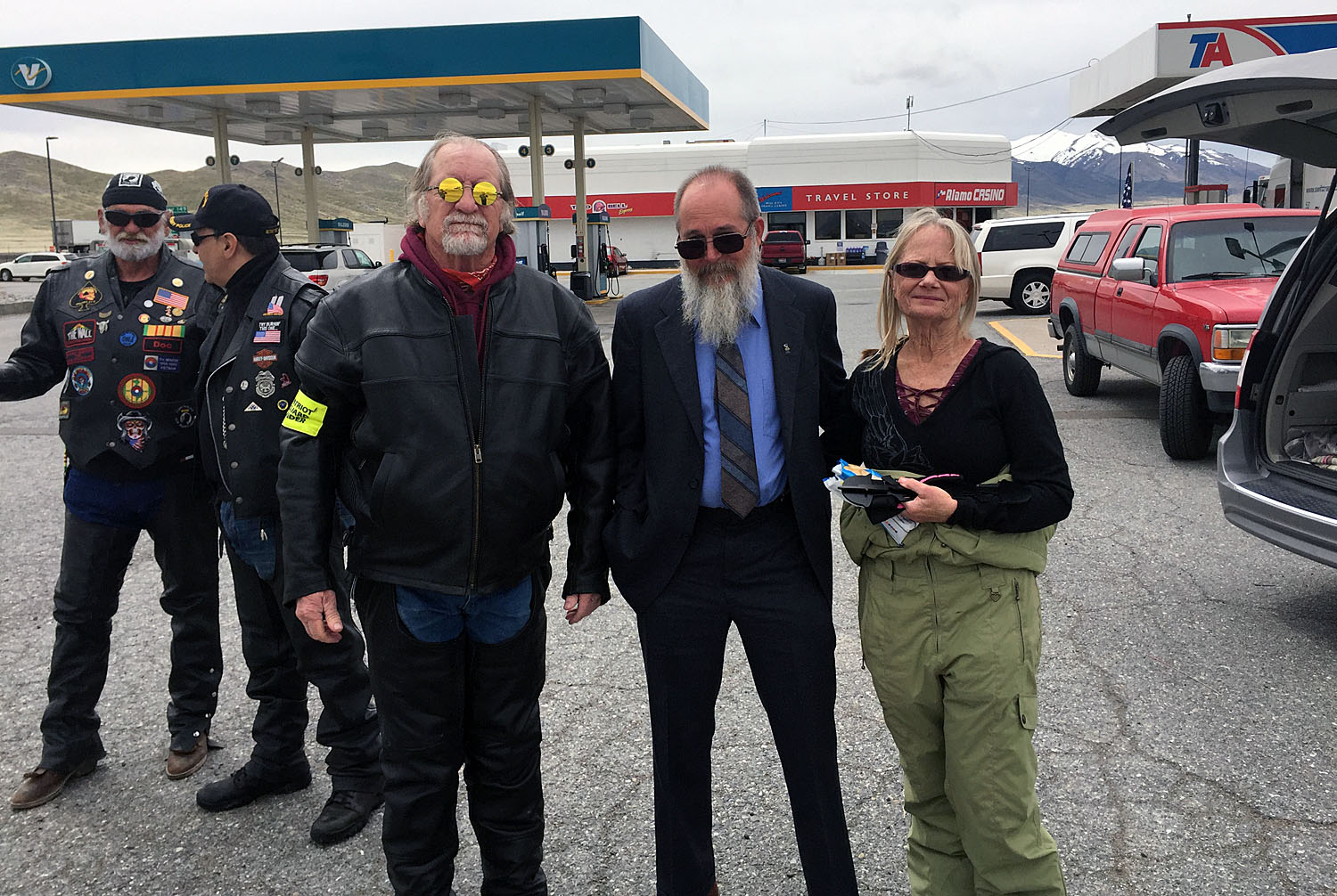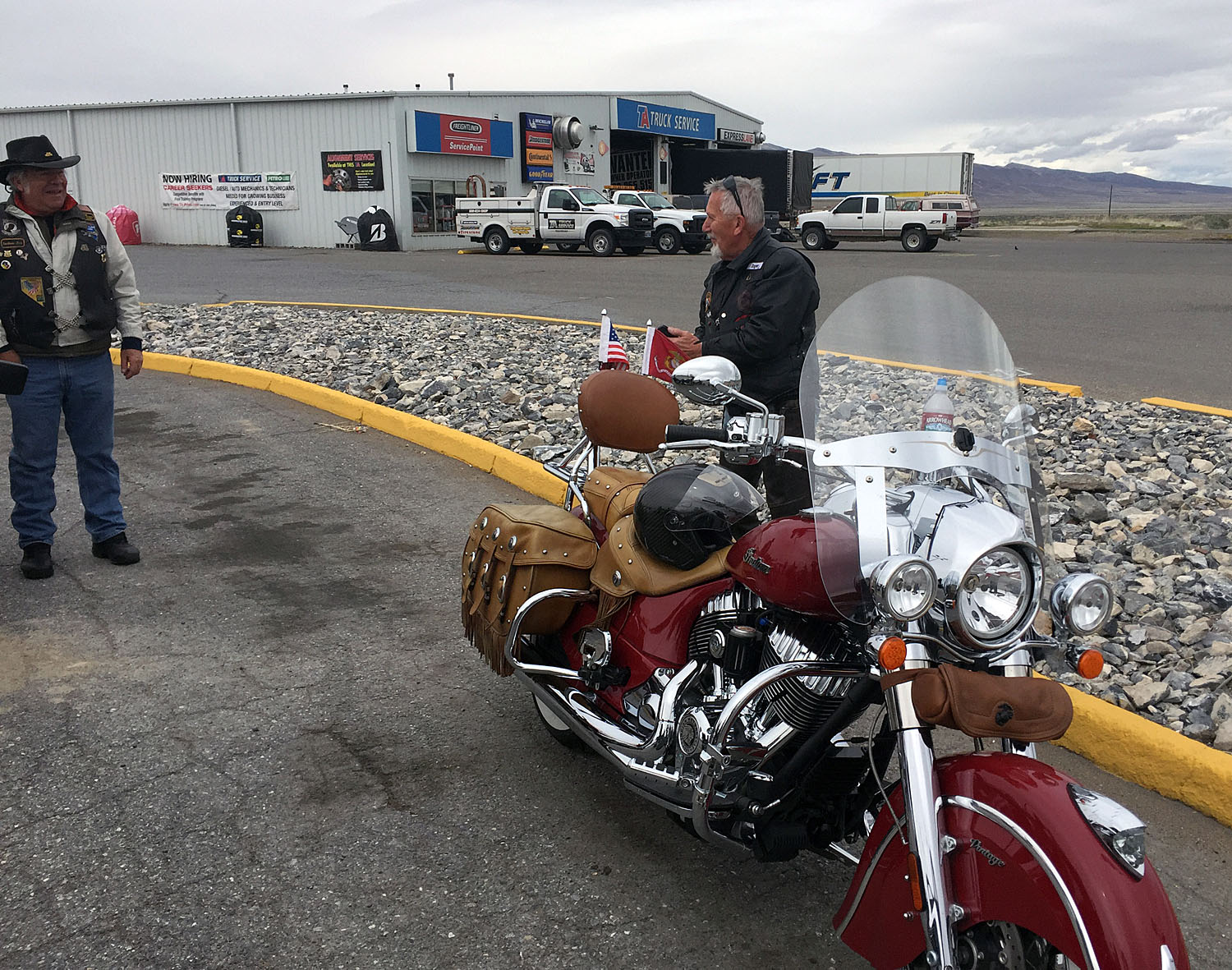 Ride Captain Jim Driscoll rode his motor from Winnemucca to Mill City To join the escort.