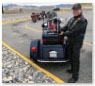 We proceeded north on I-580, to join I-80, eastbound. As we passed Vista Blvd. in Sparks, NV, we were joined By Assistant State Captain William Drummond, and 5 other PGR, on motors. William moved up to take the lead, While the other 5 PGR eased in between the coach and the cage carrying MRS King, and 2 of their children.