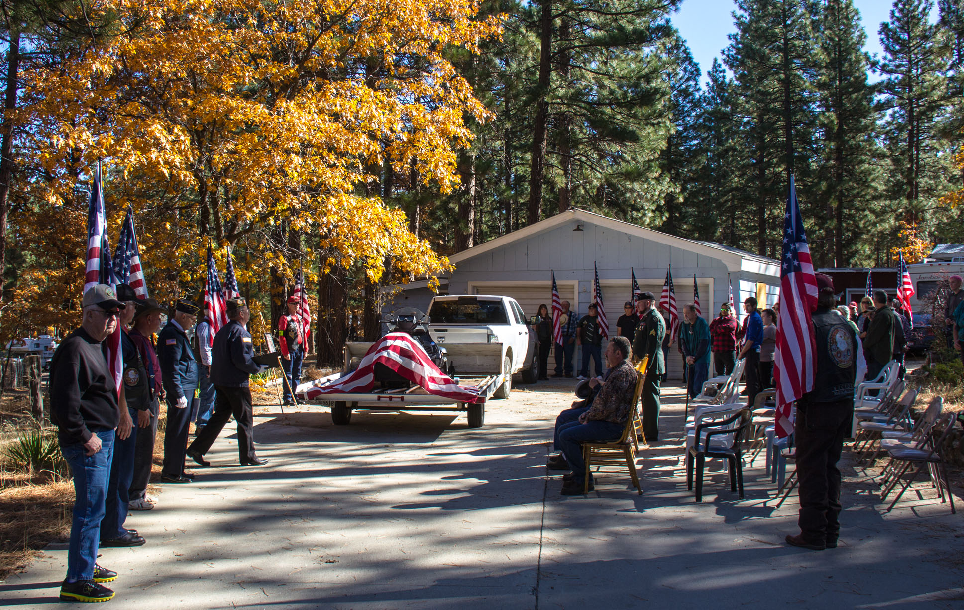 The family having invited the PGR to provide honors during a Memorial Service for U.S. Army Earl Grooms at his family's home in Janesville, CA.