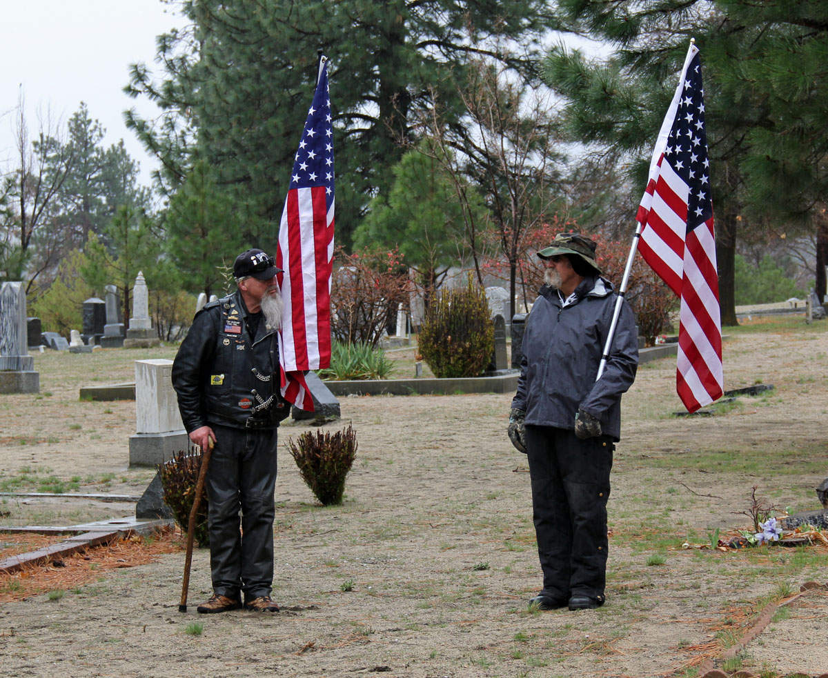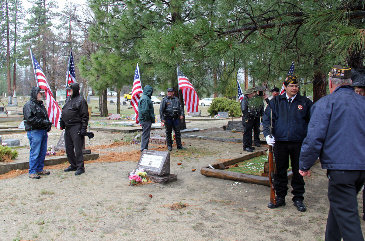 The Patriot Guard Riders having been invited by the family of fallen US Army Veteran, Pvt2 Douglas Bowman, to stand and honor during his Interment Service at the Janesville Cemetery, Janesville, CA.. The mission involved a flag line at the Janesville Cemetery, Janesville, CA for family and friends to pass through. After a miscommunication on the Interment site, the Susanville PGR responded to the new location in Janesville in time to present Honors to Pvt2 Douglas Bowman and his family.