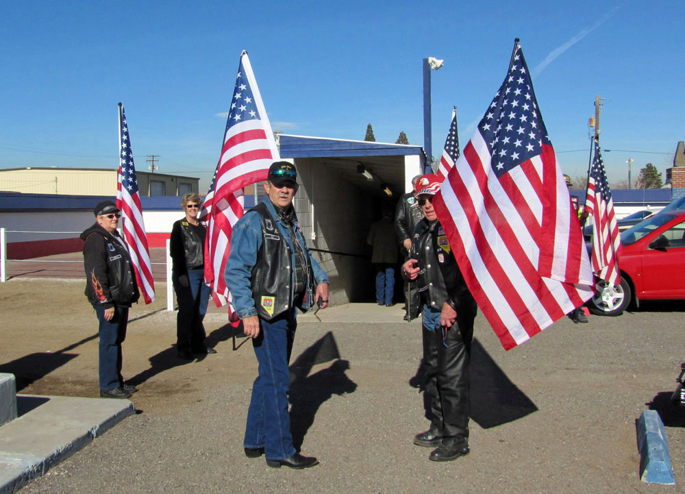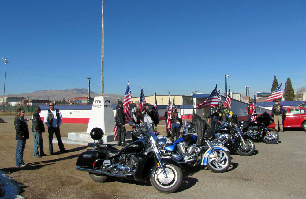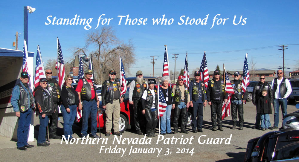 This day, Nor Cal PGR members from Alturas, Susanville and Truckee, CA stood shoulder to shoulder with PGR members from Fallon, Silver Springs, Sparks and Reno, NV to form a thirteen member flag line prior to the memorial service honoring fallen US Navy veteran Brent Butler.