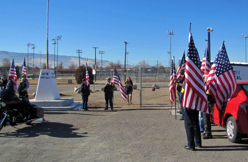Following a 'pot luck' lunch, Vietnam Veterans of America #989 Honor Guard presided over the memorial service during which the Pledge of Allegiance, National Anthem and Taps were played. The service concluded with prayers, testimonials and 'memories' from the thirty plus group of family, friends and Glenna Smith, representing Senator Dean Heller.