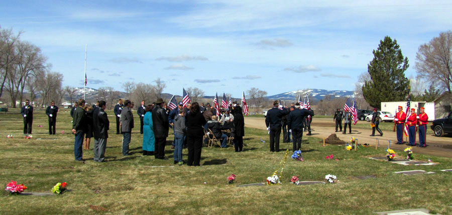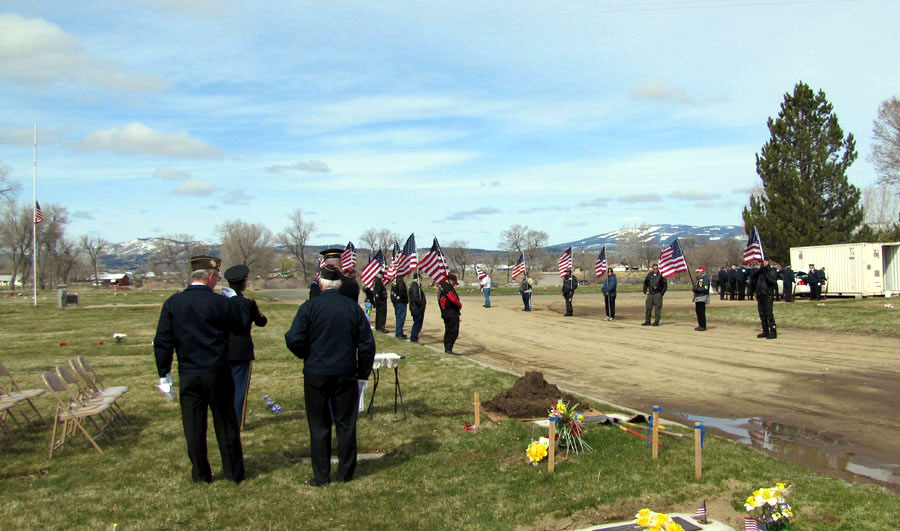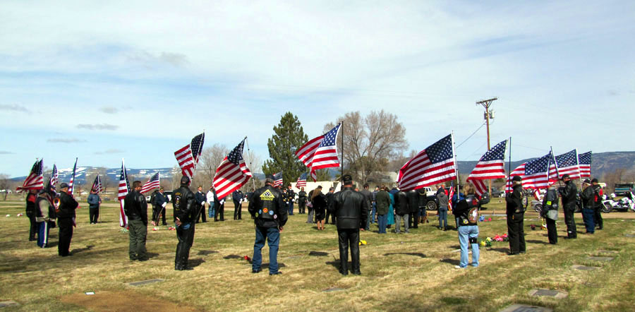 The Patriot Guard Riders having been invited by the family of fallen US Marine Corp Veteran, Pvt Thomas J. Menefee Jr, to stand and honor during his interment service at the Diamond Crest Cemetery, Susanville, CA.. The mission involved a flag line at the Diamond Crest Cemetery, Susanville, CA. for family and friends to pass through. On a beautiful, Spring day, 22 PGR members showed to present Honors for this true American Hero, where the PGR stood Honor Line at his final resting.
