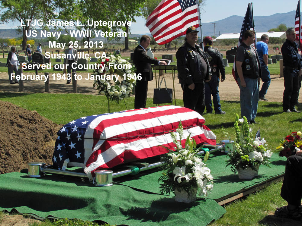The Patriot Guard Riders having been invited by the family of fallen US Navy - World War II Veteran, LTJG James L. Uptegrove, to stand and honor during his Interment service at the Diamond Crest Cemetery, Susanville, CA. LTJG James L. Uptegrove served his country proudly from 1942 to 1946.
