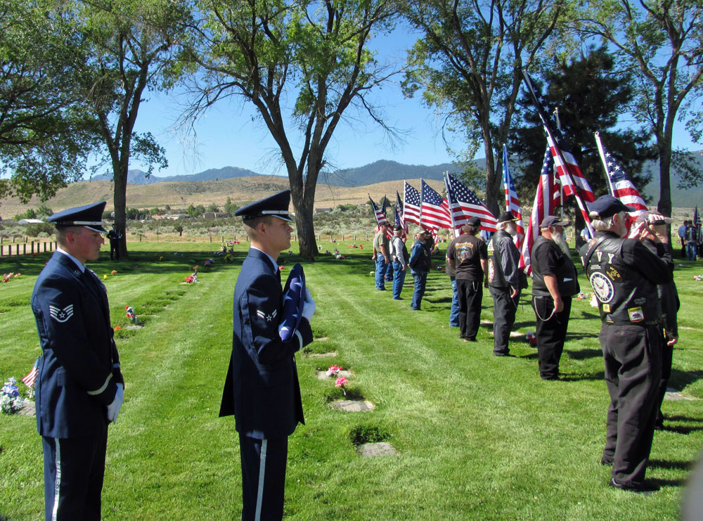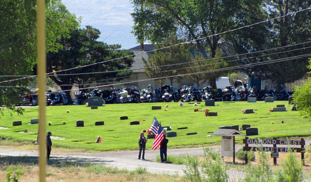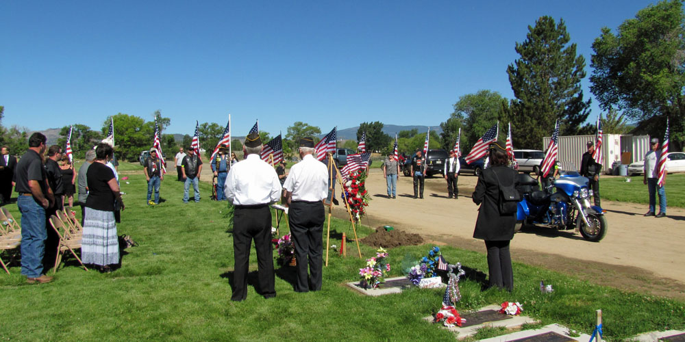 On a beautiful sunny day in Lassen County, a total of 54 Patriot Guard Members came from far and wide with 37 motorcycles & countless cages to show their honors and respect to Korean War veteran and fellow PGR member, USAF SSgt. Fred Richard Schultz at his interment services at Diamond Crest Cemetery.